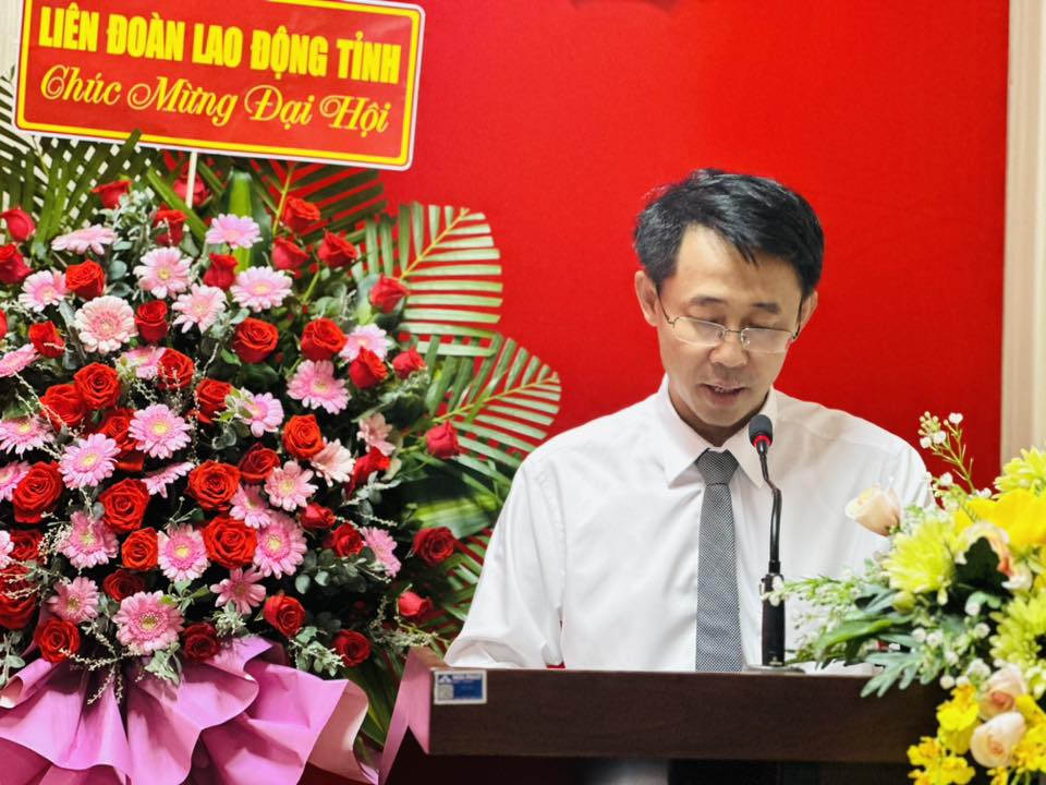 Đồng chí Phan Thanh Liêm - Bí thư Đảng ủy, Chủ tịch LĐLĐ tỉnh phát biểu tại hội nghị.