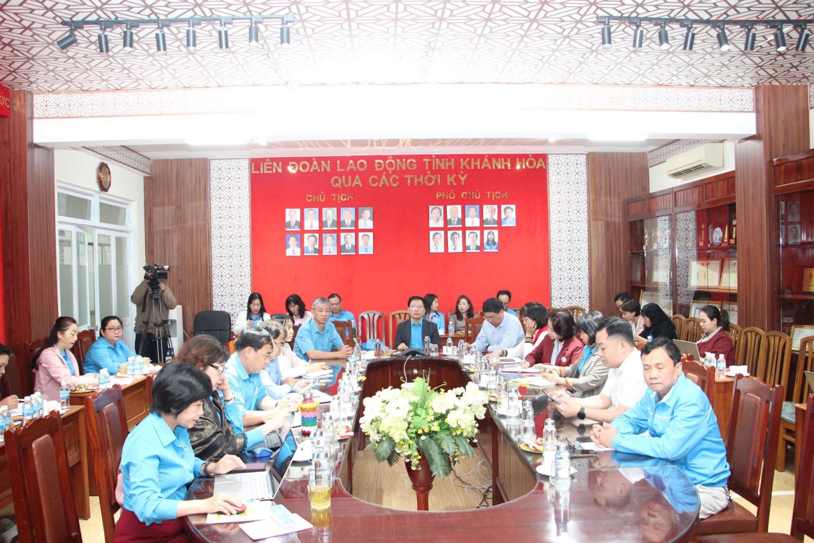 Hội nghị được tổ chức ở cấp toàn quốc, trực tiếp kết hợp trực tuyến với gần 100 điểm cầu. Tại đầu cầu Khánh Hoà có đồng chí Phan Thanh Liêm, UV. BCH Tổng Liên đoàn Lao động Việt Nam, Chủ tịch LĐLĐ tỉnh chủ trì; các Phó Chủ tịch LĐLĐ tỉnh; lãnh đạo các ban LĐLĐ tỉnh; cán bộ nhân viên cơ quan LĐLĐ tỉnh và cán bộ công đoàn chuyên trách, CĐ cấp ngành, huyện tham dự.