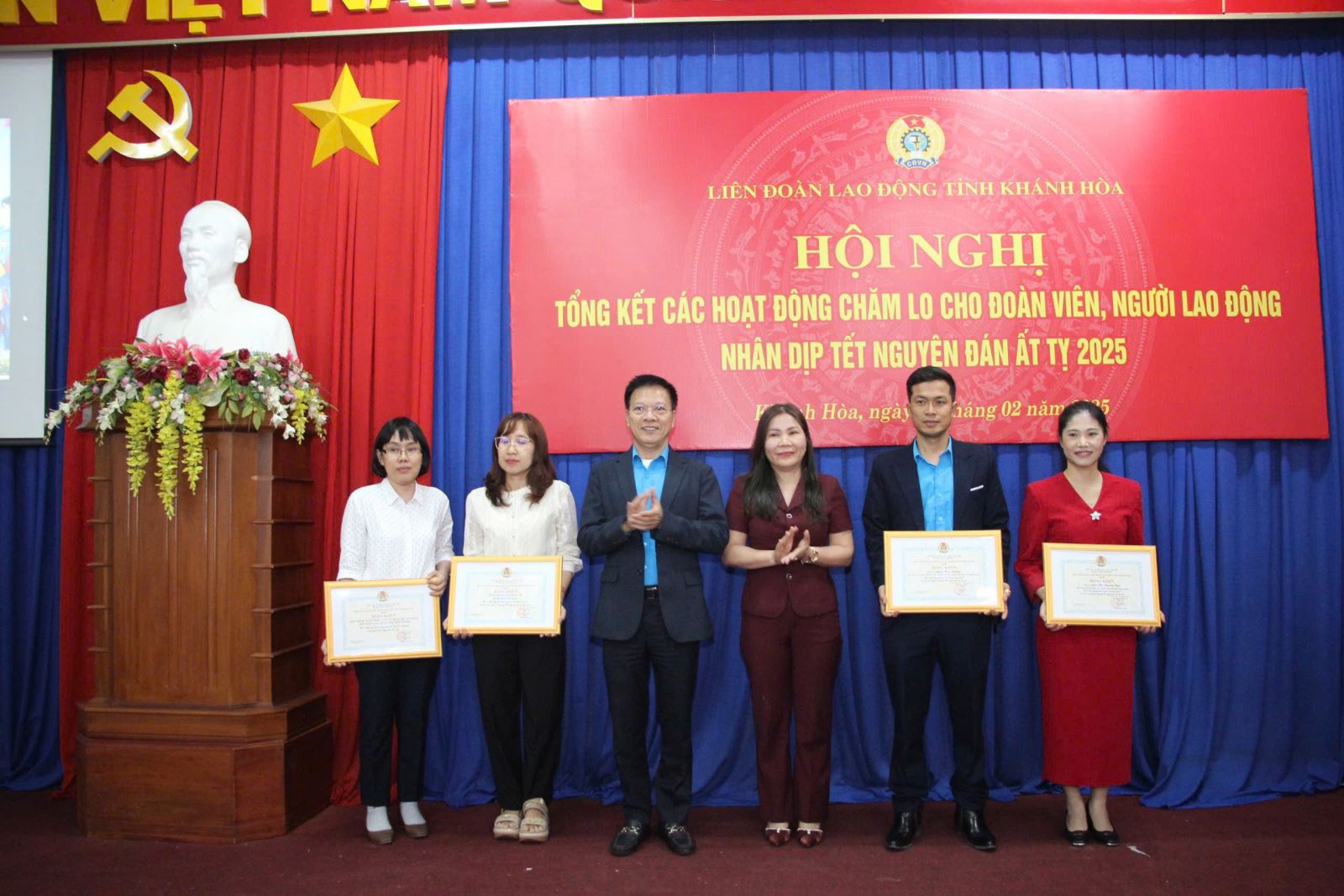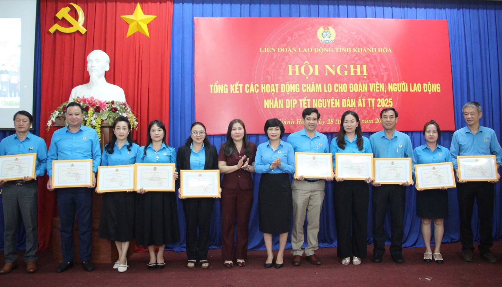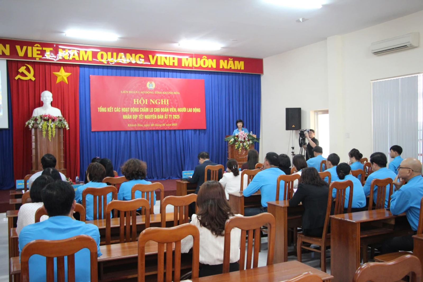 Chiều 28-2, Liên đoàn Lao động tỉnh tổ chức hội nghị tổng kết các hoạt động chăm lo cho đoàn viên, người lao động nhân dịp Tết Nguyên đán Ất Tỵ 2025. Tham dự hội nghị có các đồng chí: Lê Vinh Liên Trang, Phó Trưởng Ban Tuyên giáo & Dân vận Tỉnh ủy; Trần Thị Tú Viên, Phó Chủ tịch UBMTTQ Việt Nam tỉnh; Phan Thanh Liêm, Ủy viên BCH Tổng LĐLĐ VN, chủ tịch LĐLĐ tỉnh; các đồng chí Thường trực LĐLĐ tỉnh, đại diện lãnh đạo Ban Quản lý KKT Vân Phong; lãnh đạo các ban LĐLĐ tỉnh, lãnh đạo LĐLĐ cấp huyện, CĐ cấp ngành, các CĐCS trực thuộc LĐLĐ tỉnh.