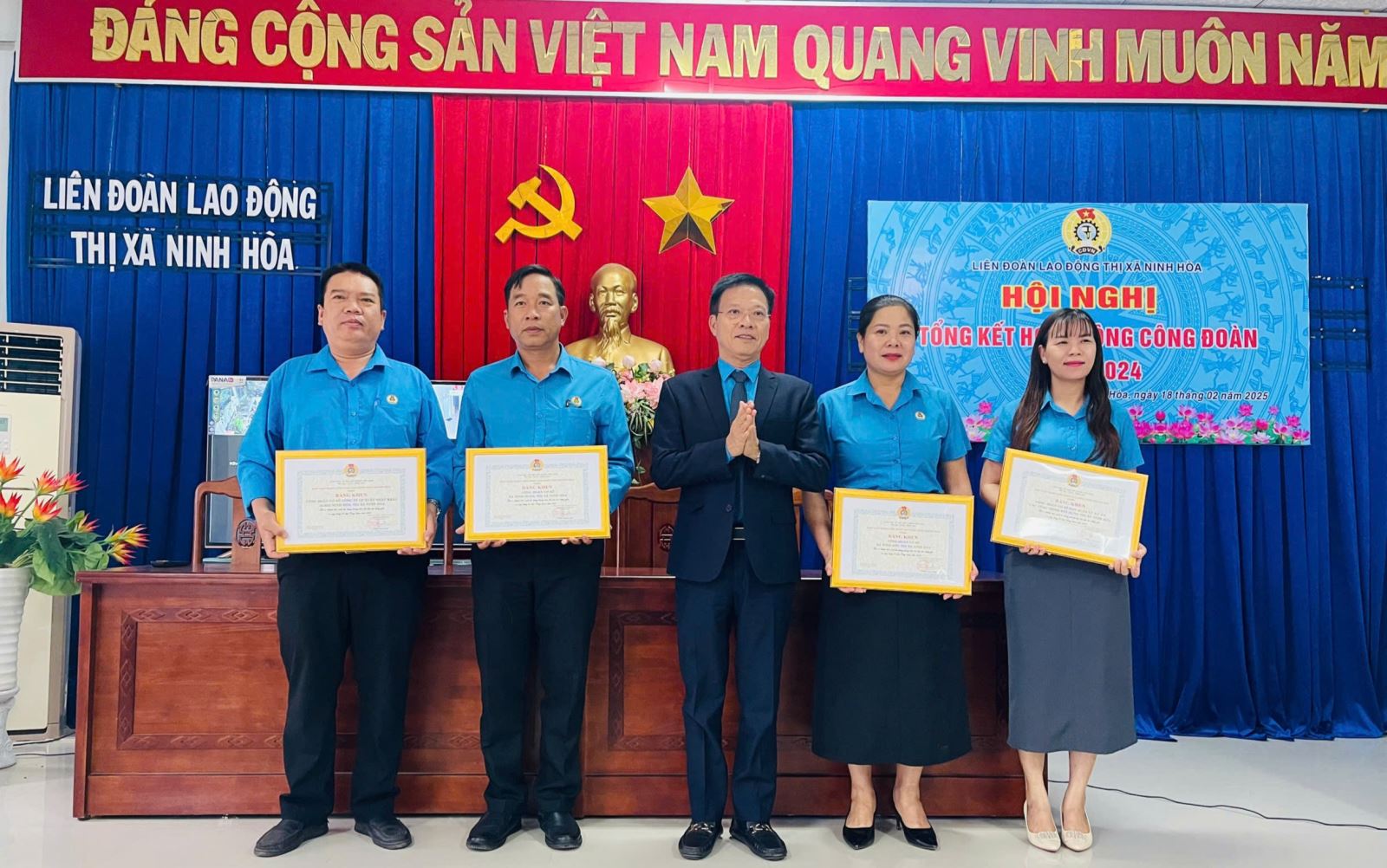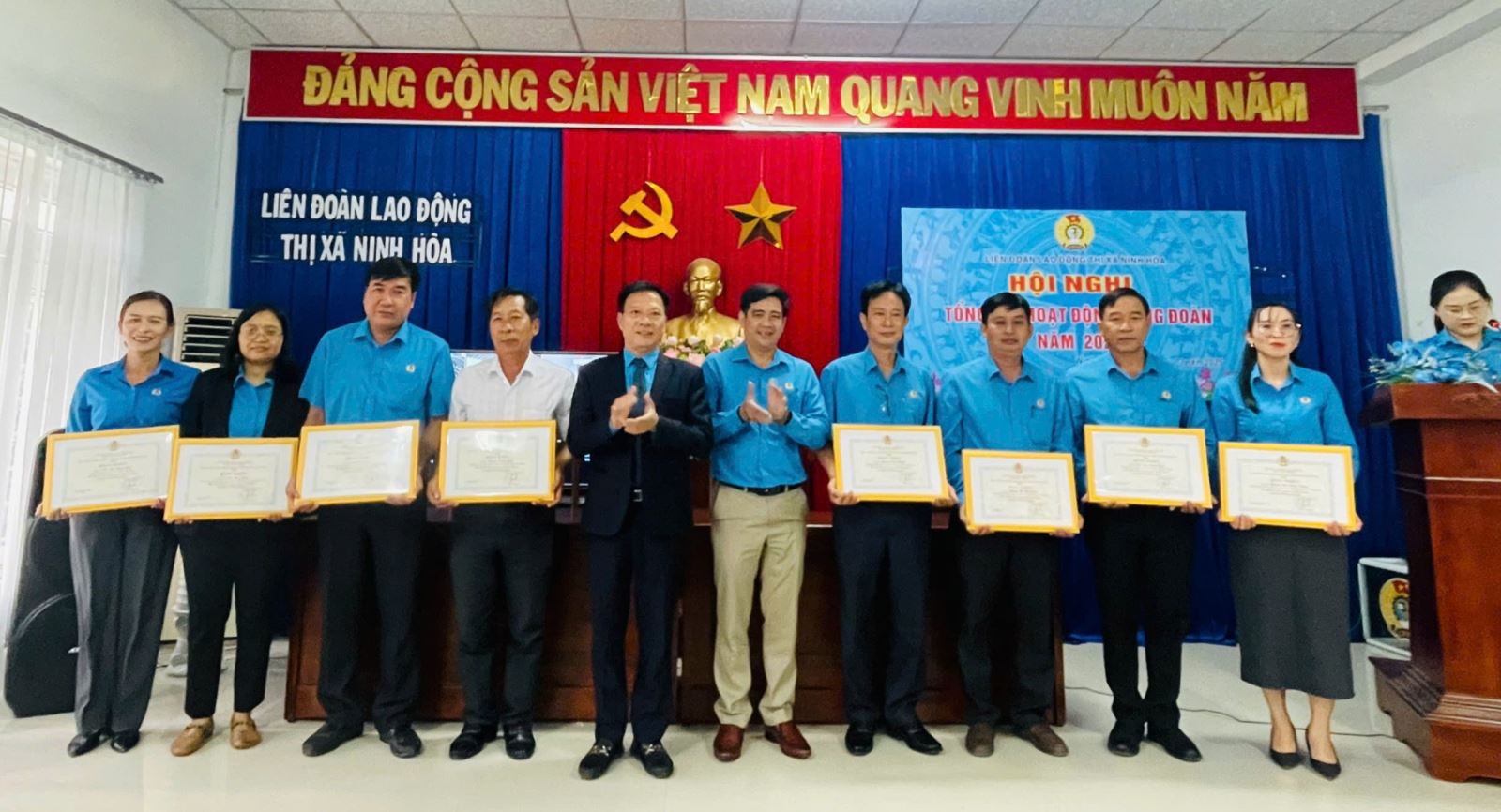 Chiều ngày 18/02, Liên đoàn Lao động (LĐLĐ) thị xã Ninh Hòa tổ chức Hội nghị Tổng kết hoạt động Công đoàn năm 2024. Đến dự và chỉ đạo Hội nghị có đồng chí Phan Thanh Liêm – Uỷ viên BCH Tổng LĐLĐ Việt Nam, Chủ tịch LĐLĐ tỉnh Khánh Hòa; đồng chí Lê Minh Tân – Phó trưởng Ban Dân Vận Thị uỷ Ninh Hoà; Các đồng chí trong Ban Thường vụ, Ban Chấp hành LĐLĐ thị xã; Các đồng chí Chủ tịch, Phó chủ tịch CĐCS khối HCSN, xã, phường, doanh nghiệp trực thuộc; Các tập thể, cá nhân được biểu dương, khen thưởng.