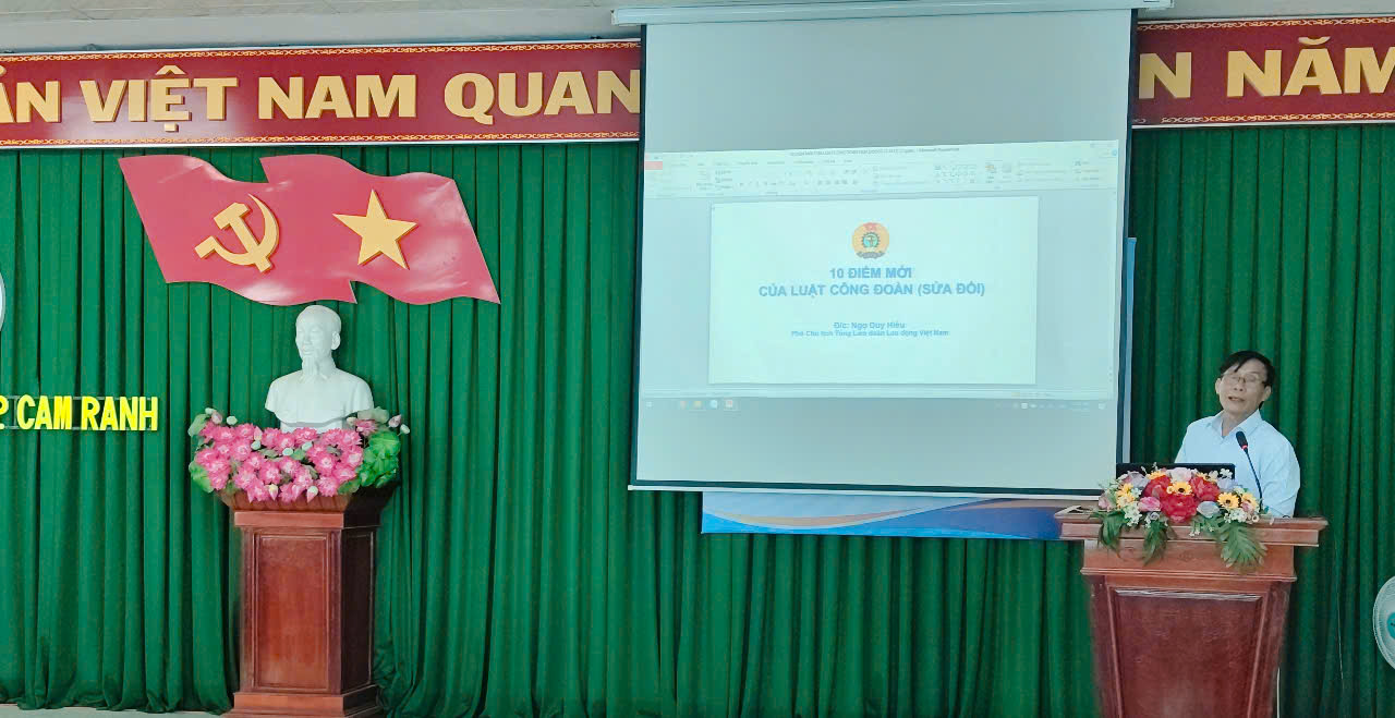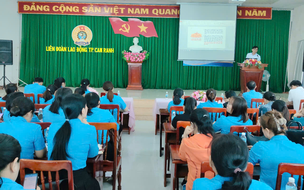 Sáng ngày 4/3/2025, LĐLĐ thành phố Cam Ranh tổ chức hội nghị Tuyên truyền triển khai thực hiện Luật Công đoàn (sửa đổi) năm 2024 cho hơn 130 đại biểu là Chủ tịch, Phó Chủ tịch Công đoàn cơ sở trực thuộc LĐLĐ thành phố.