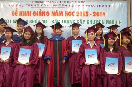 Trường Trung cấp Chuyên nghiệp Nha Trang - Đại học Tôn Đức Thắng, thuộc Tổng Liên đoàn Lao động Việt Nam, vừa tổ chức Khai giảng năm học mới (2013-2014), tiếp nhận thí sinh trúng tuyển Khóa đào tạo thứ 12 (2013-2015); Tổng kết năm học thứ nhất cho 279 học sinh Khóa 11(2012-2014) và Bế giảng Khóa đào tạo thứ 10 bậc TCCN (2011-2013), cử hành Lễ ra trường và phát bằng tốt nghiệp TCCN chính qui quốc gia cho 115 học sinh thuộc các chuyên ngành kế toán, nhà hàng - khách sạn, xây dựng dân dụng - công nghiệp, quản lý đô thị...