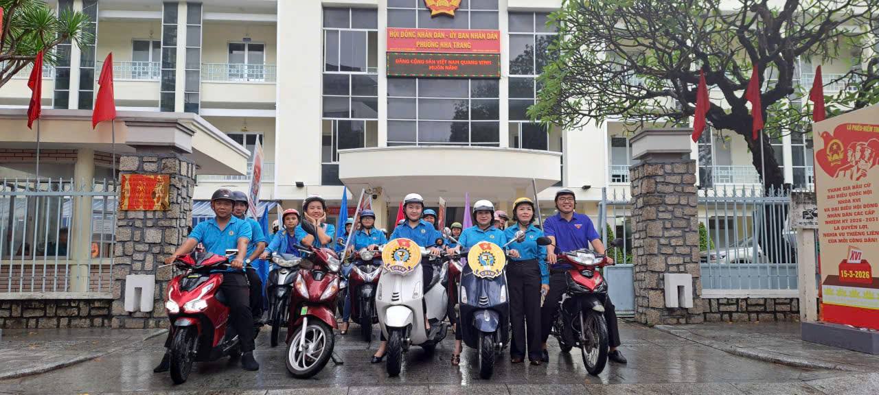 Công đoàn phường Tây Nha Trang tham gia diễu hành tuyên truyền bầu cử HĐND các cấp.