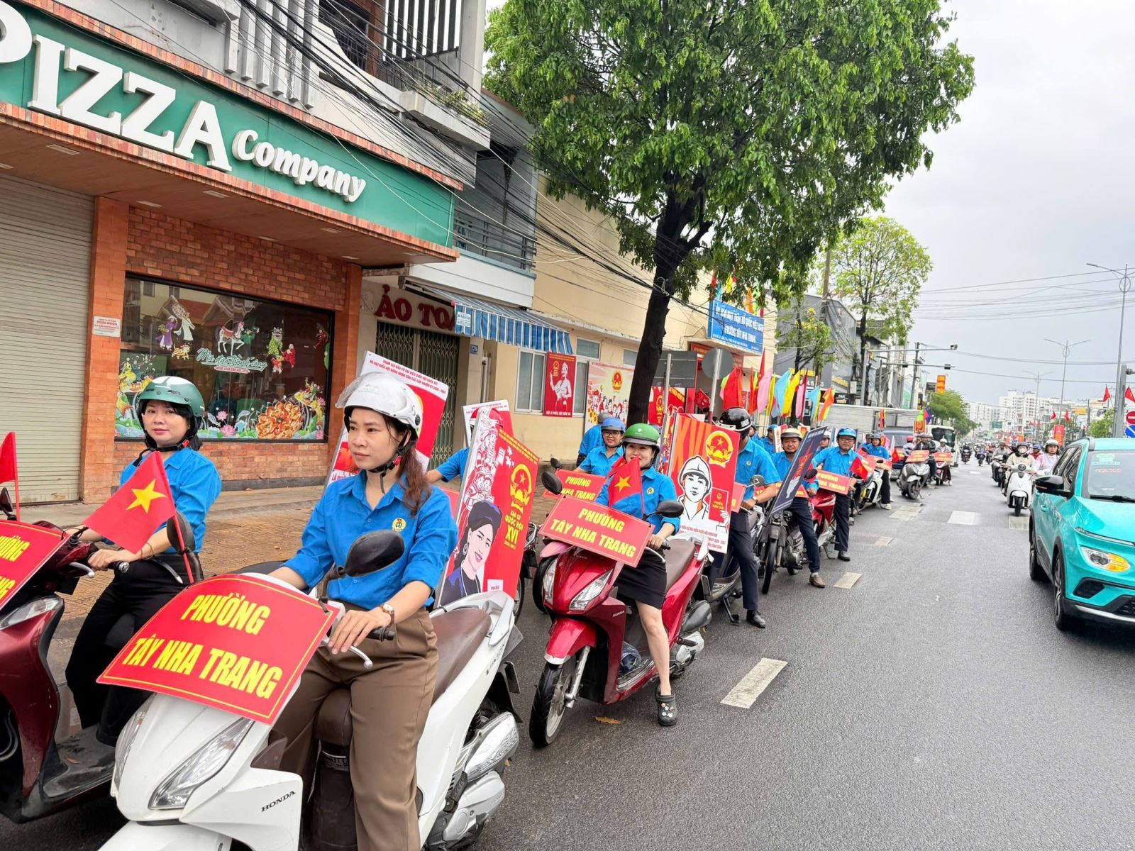 Tiêu biểu, Công đoàn các phường Nha Trang, Tây Nha Trang, phường Bảo An đồng loạt ra quân diễu hành cùng các cơ quan, đoàn thể, tạo không khí sôi nổi trước “ngày hội non sông”.