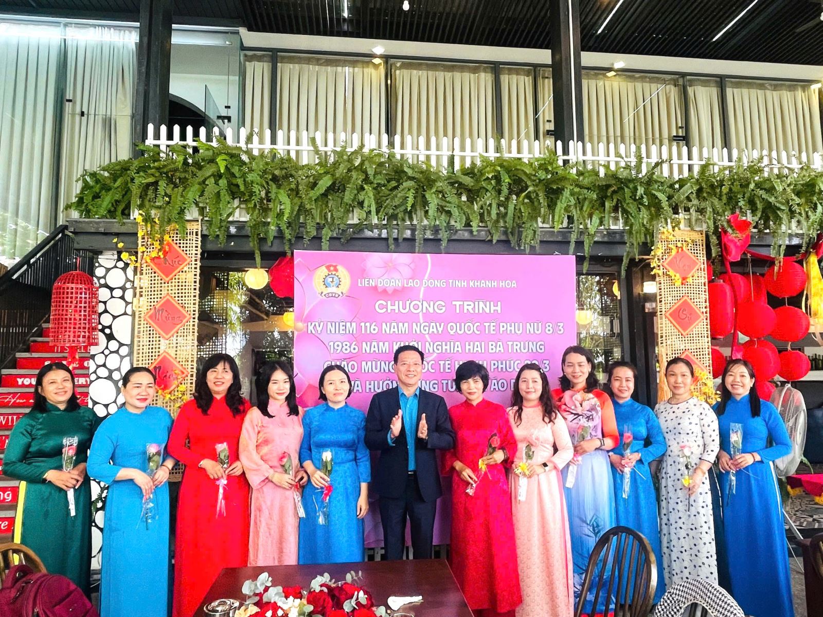 Lãnh đạo Liên đoàn Lao động tỉnh đã tặng hoa và quà chúc mừng nữ cán bộ, công nhân viên, người lao động. Theo ông Phan Thanh Liêm, Chủ tịch Liên đoàn Lao động tỉnh Khánh Hòa, toàn tỉnh hiện quản lý hơn 91.800 đoàn viên, trong đó nữ đoàn viên chiếm gần 50%.