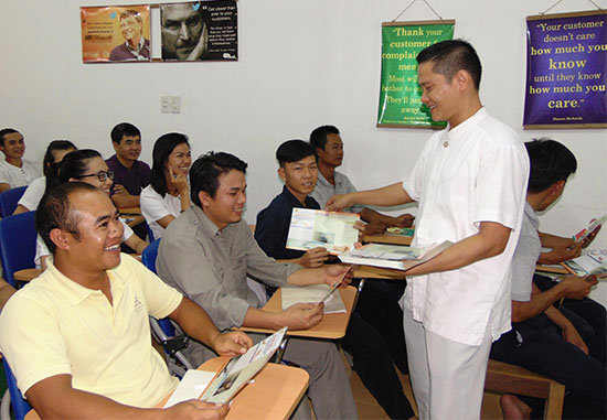 Phát tờ rơi tuyên truyền cho CNLĐ