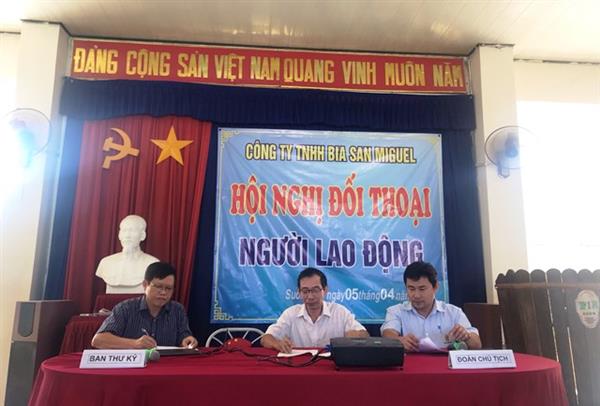 Thực hiện Nghị định 149/NĐ-CP, ngày 7/11/2018 của Chính Phủ về thực hiện Quy chế dân chủ cơ sở tại nơi làm việc; Hướng dẫn của Tổng Liên đoàn về Công đoàn và LĐLĐ tỉnh Khánh Hòa về việc các CĐCS phối hợp doanh nghiệp tổ chức Hội nghị người lao động, CĐCS Công ty TNHH Bia San Miguel Việt Nam phối hợp với công ty tiến hành tổ chức Hội nghị Người lao động năm 2019. Tham dự Hội nghị có đồng chí Huỳnh Thị Nam Khánh – Chủ tịch Công đoàn các KCN-KKT tỉnh.
