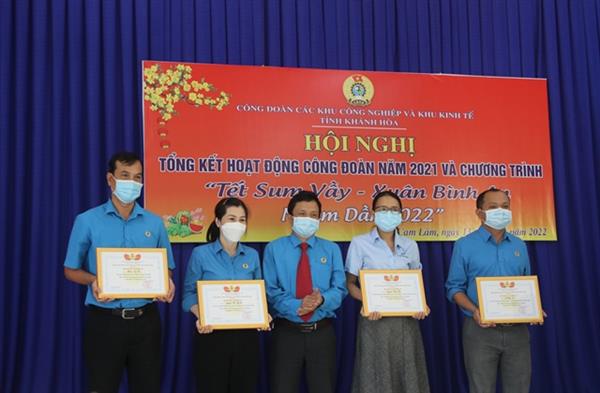 Nhằm đánh giá hoạt động Công đoàn và tặng quà CNLĐ có hoàn cảnh khó khăn, CNLĐ bị ảnh hưởng bởi dịch bệnh Covid-19, CNLĐ không có điều kiện về quê đón Tết, Công đoàn các KCN-KKT tỉnh Khánh Hòa tổ chức Hội nghị tổng kết hoạt động Công đoàn 2021 và Chương trình “Tết sum vầy – Xuân bình an Nhâm Dần 2022”. Tham dự và chỉ đạo Hội nghị có đồng chí Bùi Đăng Thành – Phó Chủ tịch LĐLĐ tỉnh Khánh Hòa.