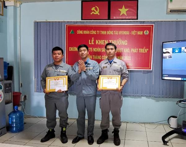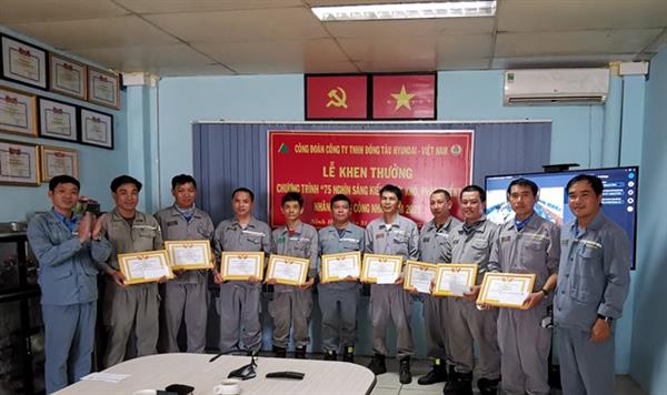 Nằm trong chuỗi các hoạt động Tháng Công nhân 2021, sáng ngày 31/5/2021, Công đoàn Công ty TNHH Đóng tàu Hyundai Việt Nam (HVS) đã tổ chức Lễ khen thưởng các tập thể, các nhân có sáng kiến, đề tài cải tiến xuất sắc hưởng ứng Chương trình “75 nghìn sáng kiến, vượt khó, phát triển”.