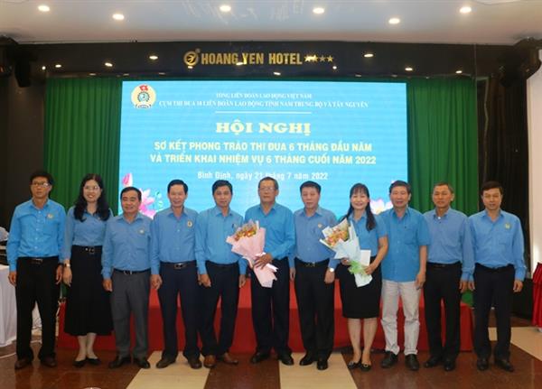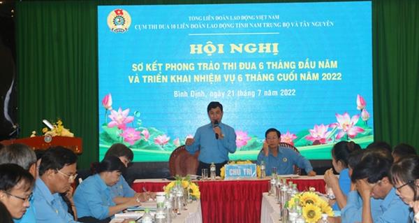 Sáng 21/7/2022, tại tỉnh Bình Định đã diễn ra Hội nghị sơ kết phong trào thi đua 6 tháng đầu và triển khai nhiệm vụ 6 tháng cuối năm 2022 Cụm thi đua 10 tỉnh Nam trung bộ và Tây Nguyên, gồm: Cụm trưởng Bình Định, Đăklăk, Quảng Nam, Quảng Ngãi, Khánh Hòa, Phú Yên, Kon Tum, Gia Lai, Lâm Đồng, Đắk Nông . Tham dự có đồng chí Tạ Văn Đồng - Ủy viên Đoàn Chủ tịch, Chủ nhiệm UBKT Tổng LĐLĐ Việt Nam.