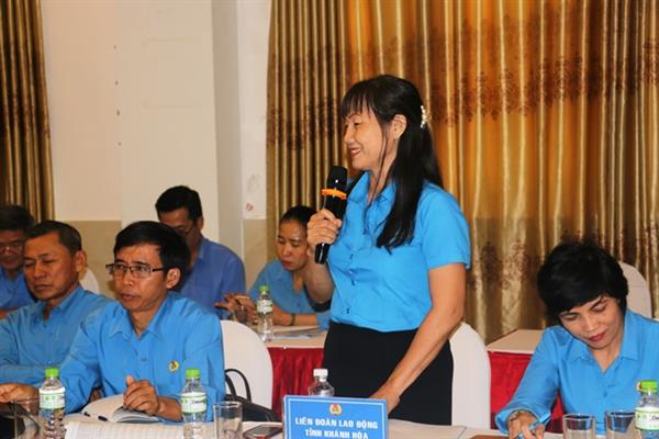 Đ/c Nguyễn Thị Hằng - Phó Chủ tịch thường trực LĐLĐ tỉnh Khánh Hòa tham gia ý kiến