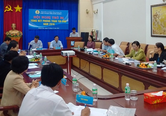 Ngày 7.12, Khối thi đua Công đoàn ngành gồm CĐ Viên chức tỉnh, CĐ ngành Y tế, CĐ ngành Giáo dục, CĐ các khu CN và khu kinh tế tỉnh, CĐ Tổng Công ty Khánh Việt và CĐ Công ty Yến sào Khánh Hòa đã tổng kết hoạt động CĐ năm 2016.