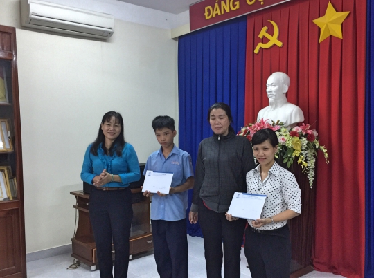 Nhân dịp khai giảng năm học 2017-2018, chiều ngày 07/9/2017, LĐLĐ tỉnh Khánh Hòa tổ chức trao tiền lãi ngân hàng từ 2 sổ tiết kiệm cho con của công nhân lao động bị tai nạn lao động thuộc Công ty CP Giấy 3/2 và Công ty TNHH Sơn Tinh - TP Hồ Chí Minh từ nguồn Quỹ Tấm lòng vàng Lao động. Về dự và trao hỗ trợ có đồng chí Nguyễn Thị Hằng – Phó Chủ tịch LĐLĐ tỉnh.