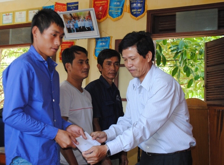 Đ/c Phạm Xuân Danh, Phó Chủ tịch LĐLĐ tỉnh trao tiền hỗ trợ