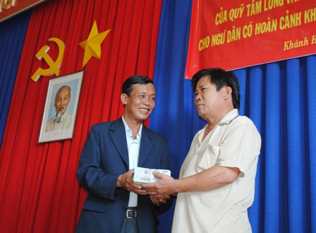 Sáng 6-2, LĐLĐ tỉnh cùng với CĐ ngành NN-PT nông thôn Khánh Hòa và VP Báo Lao động tổ chức trao 66 suất quà Tết (mỗi suất 300.000đồng) từ nguồn quỹ “Tấm lòng vàng Báo Lao động” cho ngư dân có hoàn cảnh khó khăn. Đồng thời trao 100 triệu đồng từ Chương trình tấm lưới nghĩa tình Báo Lao động (đợt 2) cho ông Đặng Văn Pháp – Địa chỉ 260 Đoàn kết Hà Ra, phường Vĩnh Phước, TP Nha Trang - Chủ tàu cá KH 95977 bị chìm do cơ bão số 1 tại đảo Song Tử Tây thuộc Quần đảo Trường Sa. Mục đích hỗ trợ giúp cho ngư dân có điều kiện tái tạo lại tàu để tiếp tục ra khơi bám biển, bám ngư trường.