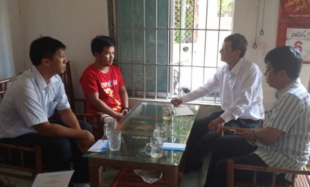 Đồng chí Nguyễn Văn Hài- Phó chủ tịch LĐLĐ tỉnh đã ân cần thăm hỏi và chia sẻ những vướng mắc liên quan đến chế độ chính sách với gia đình anh Quyết.