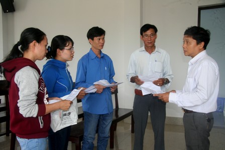 Đại diện Chi hội Luật gia Công đoàn hướng dẫn NLĐ thủ tục trước khi tham gia tố tụng tại Toà