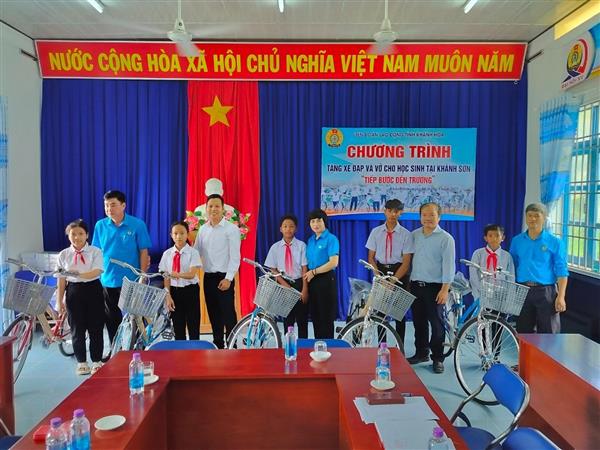 trao tặng 05 xe đạp và 3.000 quyển vở cho con đồng bào Khánh Sơn