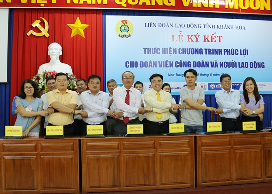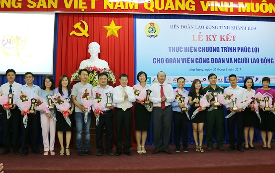 Sáng 30-5, Liên đoàn Lao động tỉnh Khánh Hòa đã tổ chức Lễ ký kết thỏa thuận hợp tác đưa phúc lợi đến với đoàn viên và người lao động năm 2017. Hoạt động này nằm trong chủ đề hoạt động "Năm vì lợi ích của đoàn viên công đoàn” và nằm trong chuỗi hoạt động của “Tháng công nhân” năm 2017.