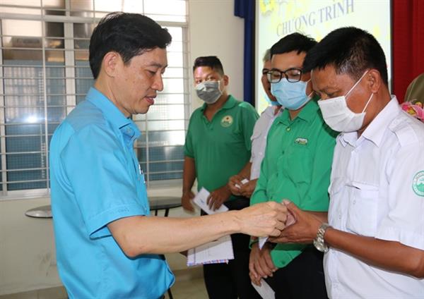 Đ/c Chu Văn An - Chủ tịch CĐN Giao thông tỉnh trao hỗ trợ cho đoàn viên, NLĐ khó khăn