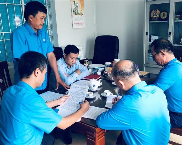 Tại buổi làm việc, đồng chí Phạm Huy Trường – Phó Chủ tịch Phụ trách Công đoàn ngành Nông nghiệp & PTNT tỉnh Khánh Hòa đã báo cáo các hoạt động nổi bật của công đoàn ngành: Trao tặng cờ tổ quốc, chăm lo hỗ trợ kịp thời cho đoàn viên Nghiệp đoàn nghề cá Vĩnh Phước bị mất việc do ảnh hưởng dịch Covid-19. Bên cạnh đó, hoạt động công đoàn của Nghiệp đoàn cũng gặp nhiều khó khăn vướng mắc do đặc thù ngành nghề, lực lượng lao động không ổn định, sự am hiểu về pháp lý còn hạn chế. Đồng chí cũng trao đổi những kiến nghị, đề xuất Công đoàn các cấp có sự quan tâm đặc biệt đối với Nghiệp đoàn cơ sở, hỗ trợ tư vấn pháp lý đối với chủ tàu về an toàn lao động, cứu hộ cứu nạn, bảo vệ quyền lợi hợp pháp chính đáng đoàn viên và ngư dân.
