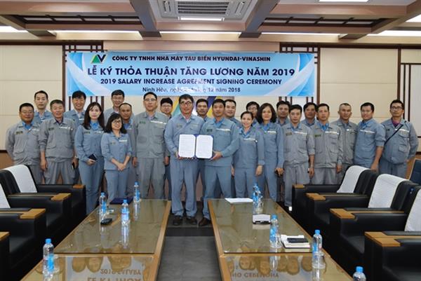 Ngay từ giữa tháng 11 năm 2018, Công đoàn Công ty TNHH Nhà máy tàu biển Hyundai- Vinashin (HVS) đã triển khai lấy ý kiến người lao động các nội dung thương lượng tăng lương và phúc lợi cho năm 2019. Sau 3 phiên đàm phán với nỗ lực cao nhất của cả hai bên, đến tối ngày 24/12/2018, lãnh đạo công ty và Ban chấp hành Công đoàn đã đạt được thỏa thuận cuối cùng. Ngày 26/12/2018, Công đoàn và Công ty đã ký thỏa thuận tăng lương với 7 nội dung liên quan đến chính sách lương thưởng và phúc lợi năm 2019.