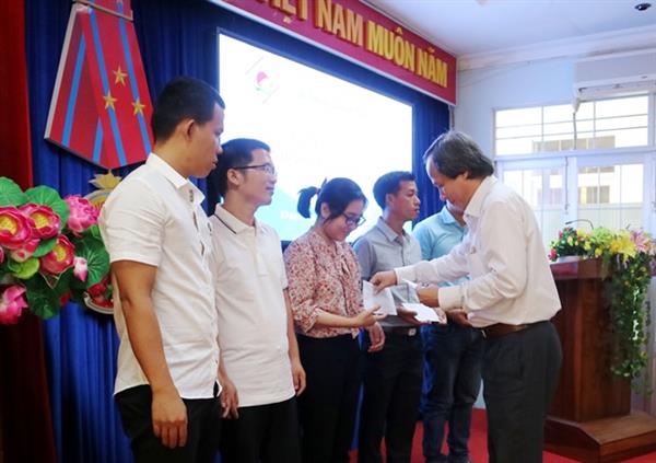 Lãnh đạo Sở Giáo dục & Đào tạo tỉnh trao quà cho các giáo viên