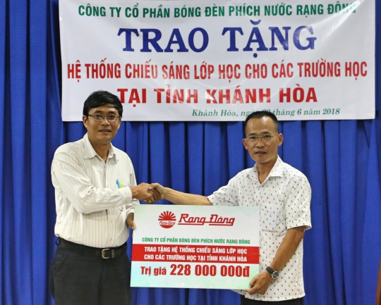 Với tinh thần “lá lành đùm lá rách”, thực hiện chương trình chiếu sáng học đường cho các em học sinh vùng khó khăn tỉnh Khánh Hòa, chiều 20/6, tại cơ quan LĐLĐ tỉnh, Quỹ XTHTT Tấm Lòng vàng Lao Động phối hợp với Công ty cổ phần Bóng đèn phích nước Rạng Đông tổ chức trao tặng hệ thống chiếu sáng phòng học cho các trường học trên địa bàn huyện Vạn Ninh và thị xã Ninh Hòa tỉnh Khánh Hòa.