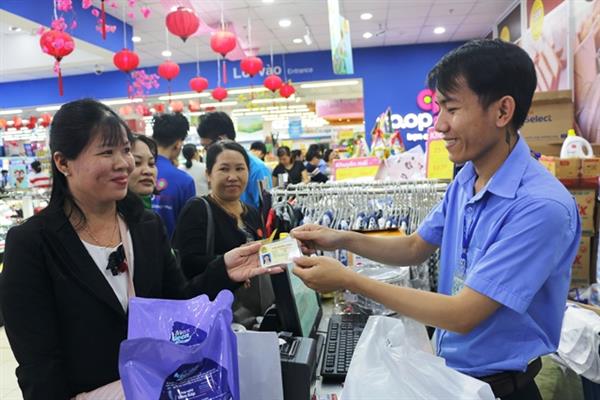 Chị Lê Thị Hồng Ân sử dụng thẻ đoàn viên mua hàng tại Siêu thị Co.opmart Nha Trang