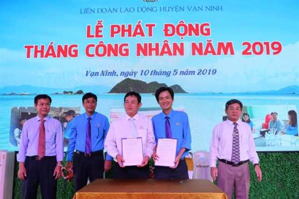 Trong năm 2019, mỗi CĐCS của huyện đã đăng ký ít nhất một nội dung để tổ chức hoạt động chăm lo cho đoàn viên, người lao động như: hoạt động văn hóa, văn nghệ, tham quan dã ngoại; thăm hỏi, tặng quà cho đoàn viên, công nhân lao động có hoàn cảnh khó khăn. Tiêu biểu, LĐLĐ huyện đã ký kết chương trình phúc lợi với Công ty TNHH Quỳnh Anh Vạn Ninh dành cho đoàn viên công đoàn khi sử dụng các sản phẩm dịch vụ của công ty. Đồng thời, Công ty TNHH Quỳnh Anh Vạn Ninh đã trao tặng 21 bình nước nóng lạnh cho các CĐCS với tổng số tiền 63 triệu đồng; LĐLĐ huyện trao tặng 20 suất quà, mỗi suất 300.000 đồng cho 20 công nhân có hoàn cảnh khó khăn. Ngoài ra trong năm, LĐLĐ huyện Vạn Ninh còn phối hợp với Trung tâm Văn hóa - Thông tin và Thể thao huyện tổ chức giải bong đá công nhân viên chức người lao động thu hút 18 CĐCS tham gia với 216 vận động viên; phối hợp với Phòng Văn hóa – Thông tin huyện, Hội Liên hiệp Phụ nữ huyện tổ chức hội thi nấu ăn và hội thi “Tiếng hát cán bộ công nhân viên chức và người lao động huyện lần thứ 4” thu hút trên 95% CĐCS tham gia.