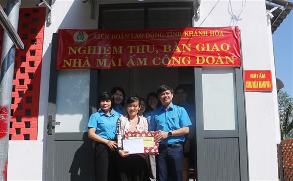 Đồng chí Bùi Hoài Nam - Chủ tịch Liên đoàn Lao động tỉnh Khánh Hòa đã chúc mừng đoàn viên có được nhà mới, động viên khích lệ tinh thần an tâm công tác, vượt khó phấn đấu hoàn thành tốt nhiệm vụ công tác. Đồng chí đã trao phần quà chúc mừng các đoàn viên đã có căn nhà mới đón xuân.