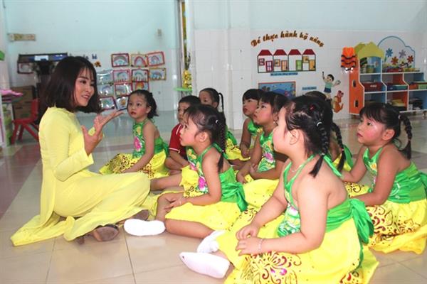 Trong chuyên môn, chị Tuyên luôn tìm tòi, học hỏi, nghiên cứu, đem hết khả năng và sự tận tâm để đưa chất lượng giáo dục toàn diện của lớp được nâng lên, hoàn thành xuất sắc công việc được giao. Đặc biệt, chị luôn đi đầu hưởng ứng các hội thi, đổi mới phương pháp dạy học. Trong đó, chị chú trọng giáo dục về kỹ năng cho trẻ. Đó là kỹ năng giao tiếp, ứng xử, tự bảo vệ bản thân… Thông qua các hoạt động vui chơi, chào cờ giáo viên sẽ hướng dẫn và thực hành về những kỹ năng các để trẻ nhận biết và làm theo. Bên cạnh đó, hoạt động ngoại khóa cũng được chị Tuyên thường xuyên tổ chức cho trẻ đi thăm quan các khu di tích lịch sử, giao lưu với các chú bộ đội, tham gia trồng rau xanh, thăm vườn nấm… Vào đầu mỗi năm học, chị Tuyên cùng với ban giáo hiệu tổ chức cho giáo viên tham gia vào các hoạt động nhà trường, nhất là các hội thi: hội giảng giáo viên dạy giỏi, hội thi làm đồ dùng dạy học, hội thi trang trí lớp. Đồng thời, vận động 100% giáo viên tham gia viết sáng kiến kinh nghiệm. Qua đó, mỗi năm nhà trường có từ 4 đến 5 đề tài được gửi lên cấp trên công nhận. Riêng bản thân chị Tuyến đến nay đã có 11 sáng kiến, kinh nghiệm được công nhân và áp dụng vào công tác giáo dục trẻ. Trong đó, chị Tuyên luôn tâm đắc về sáng kiến “Tận dụng môi trường, có sở vật chất hiện có tại trường và sử dụng vật liệu mở để tổ chức hoạt động trải nghiệm cho trẻ”. Sáng kiến này nhằm để cho trẻ cùng tham gia vào hoạt động trang trí, sắp xếp đồ vật trong lớp; biến hóa những “góc chết” của trường để tạo thành điểm vui chơi, trải nghiệm bổ ích cho trẻ. Qua đó, giúp trẻ phát triển về tư duy, vận động. Ngoài ra, để góp phần xây dựng cơ sở vật chất, trang bị đồ dùng, đồ chơi cho trẻ, chị Tuyên còn chủ đồng vận động các các nhân, doanh nghiệp them gia đóng góp kinh phí. Tính riêng năm học 2019-2020 nhà trường đã vận động được hơn 215 triệu đồng.