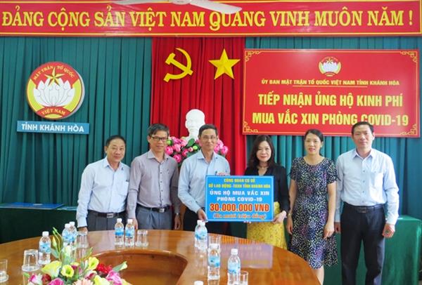 Hưởng ứng Lời kêu gọi của Ủy ban Mặt trận Tổ quốc Việt Nam (UBMTTQVN) tỉnh Khánh Hòa vận động trong nhân dân tham gia Chương trình mua vắc-xin phòng Covid-19, Công đoàn cơ sở (CĐCS) Sở Lao động – Thương binh và Xã hội đã tổ chức vận động cán bộ, công chức, viên chức và người lao động trong toàn Ngành tùy theo khả năng của mỗi người tham gia đóng góp kinh phí ủng hộ mua vắc-xin phòng Covid-19.