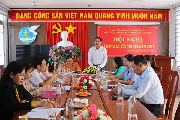 Nhằm đánh giá hoạt động năm 2020, Khối thi đua công đoàn cơ sở Mặt trận - Đoàn thể tỉnh do công đoàn Hội Liên hiệp Phụ nữ tỉnh làm trưởng khối đã tổ chức hội nghị ký kết giao ước thi đua năm 2021.
