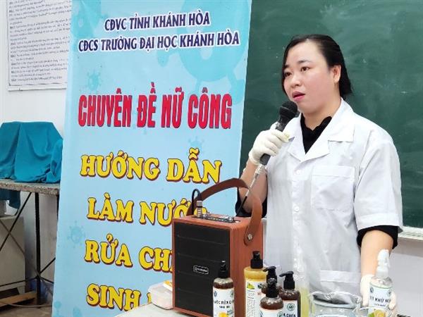 Thực hiện kế hoạch hoạt động năm học 2022-2023, Công đoàn cơ sở Trường Đại học Khánh Hòa, Ban nữ Công Trường Đại học Khánh Hòa đã tổ chức sinh hoạt chào mừng ngày phụ nữ Việt Nam 20 - 10 với chuyên đề “Làm nước rửa chén sinh học”. Thành phần tham dự chuyên đề là Ban chấp hành công đoàn trường, Ban nữ công và nữ đoàn viên công đoàn trường.