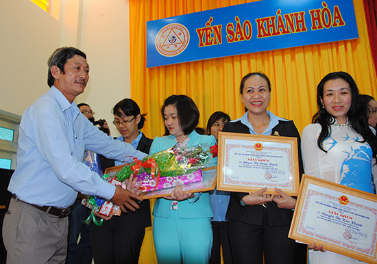 Nhân dịp này, Công ty đã tặng thưởng cho 42 nữ CNLĐ xuất sắc tiêu biểu năm 2015 và trao thưởng cho 18 nữ lãnh đạo các sở, ban ngành trong tỉnh đạt danh hiệu “Vì sự phát triển Yến sào Khánh Hoà”.