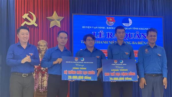 Tại buổi Lễ, Đoàn Khối thi đua các cơ quan tham mưu, tổng hợp và Đoàn thể chính trị xã hội trao tặng cho Huyện đoàn Vạn Ninh Công trình thanh niên gồm Khu Thể dục cộng đồng tại thôn Xuân Đông, xã Vạn Hưng; Hệ thống máy lọc nước cho Trường Trung học cơ sở Lý Thường Kiệt và trao 20 suất học bổng (300.000đ/suất) cho các em học sinh nghèo vượt khó và gia đình Cách mạng tại địa phương, tổng số tiền trao tặng là 96 triệu đồng.