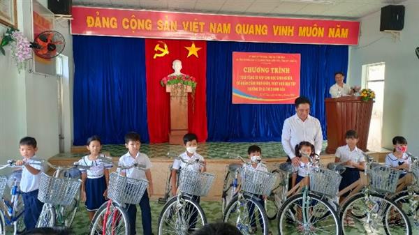 .Chiều cùng ngày, Khối thi đua các cơ quan Tham mưu Tỉnh ủy đã trao tặng 40 xe đạp đến các em học sinh nghèo tại xã Ninh Vân, thị xã Ninh Hoà, giúp các em phương tiện đến trường, qua đó, động viên, khích lệ tinh thần các em tiếp tục vượt khó, vươn lên đạt thành tích cao hơn trong học tập.
