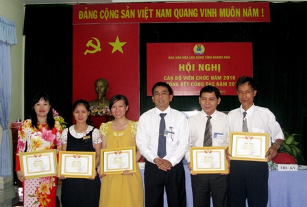 Hội nghị cán bộ viên chức (CBVC) năm 2016 và tổng kết thi đua năm 2015 của Nhà Văn hóa Lao động Khánh Hòa đã diễn ra vào chiều ngày 25/12/2015, với sự tham dự của toàn thể CBVC. Đồng chí Phạm Xuân Danh, Phó Chủ tịch LĐLĐ tỉnh, Chủ tịch CĐCS cơ quan LĐLĐ tỉnh Khánh Hòa đã đến dự và phát biểu chỉ đạo hội nghị.