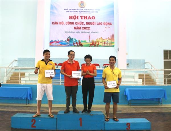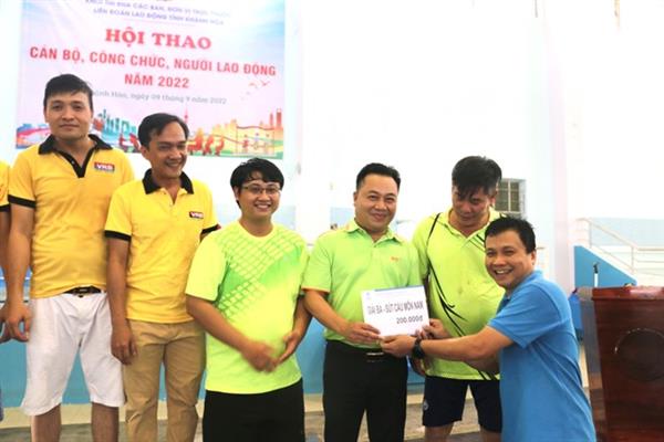 Kết thúc hội thao, Ban Tổ chức trao giải Nhất các bộ môn: Sút cầu môn nam, kéo co cho đội Ngân hàng Việt - Nga, Sút cầu môn nữ, nhảy bao bố cho đội Tuyên giáo – Nữ công – Khu CN, bơi cho đội Chính sách pháp luật và Quan hệ LĐ.