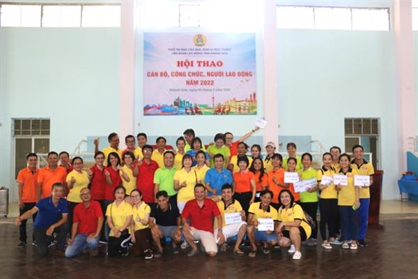 Chiều 09/9, tại Nhà Văn hóa Lao động tỉnh, Công đoàn cơ sở phối hợp Khối các ban, đơn vị trực thuộc LĐLĐ tổ chức Hội thao cán bộ, công chức, người lao động năm 2022 gồm các đơn vị: Cơ quan LĐLĐ tỉnh, Nhà Văn hóa Lao động tỉnh, Khu tưởng niệm Chiến sĩ Gạc Ma và Ngân hàng Việt – Nga Chi nhánh Khánh Hòa.
