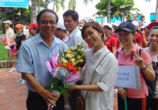 Lãnh đạo Công ty tặng hoa cho các đội tham dự hội thao