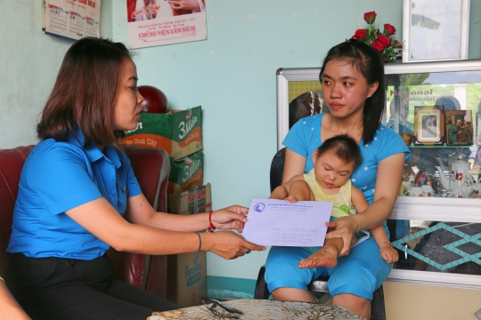 Thấu hiểu nỗi nhọc nhằn của người lao động làm việc tại các doanh nghiệp vốn đầu tư nước ngoài, nhất là những gia cảnh nữ công nhân có con bị bệnh hiểm nghèo, khuyết tật. Một trong số đó, trường hợp của đoàn viên Nguyễn Thị Duyên – CNLĐ Cty TNHH Rapexco-Đại Nam có con trai bị bệnh tim bẩm sinh (cháu Trần Gia Huy), đã mổ tim 1 lần, hiện vẫn đang điều trị ngoại trú, đến nay bệnh tình không thuyên giảm, gia cảnh lại rất khó khăn; gia đình đoàn viên Nguyễn Thị Ngọc Cam trú tại Suối Tân, Cam Lâm, Khánh Hòa, có con bị bại não, không có điều kiện kinh tế, lương thấp chỉ đủ chi phí thuê nhà trọ và phí sinh hoạt. Chính vì điều đó CĐ các Khu CN& KKT tỉnh luôn đồng hàng và chung tay giúp đỡ người lao động vượt qua khó khăn, ổn định cuộc sống.