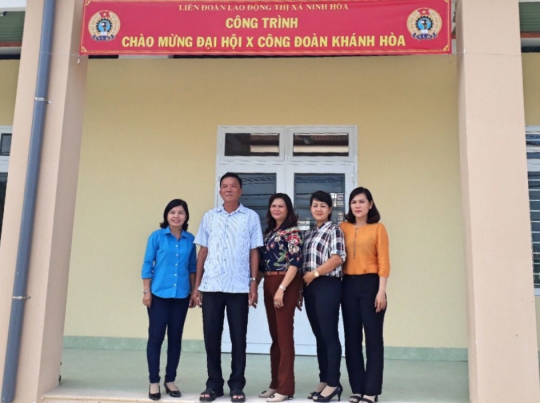Chào mừng thành công Đại hội X Công đoàn Khánh Hòa tiến tới Đại hội XII Công đoàn Việt Nam, chiều ngày 24/7, LĐLĐ thị xã Ninh Hòa phối hợp Phòng Giáo dục & ĐT thị xã, lãnh đạo CĐCS Trường Mầm non Ninh Bình tổ chức Lễ nghiệm thu, bàn giao công trình “Xây dựng nhà văn phòng và công trình phụ trợ Trường mầm non Ninh Bình”.