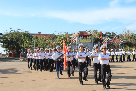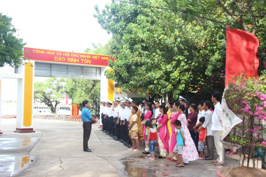 Lễ chào cờ đầu tuần ở thị trấn Trường Sa