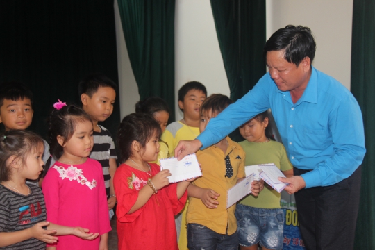 Trẻ em Trường Sa nhận quà của của Liên đoàn Lao động huyện Trường Sa gửi tặng