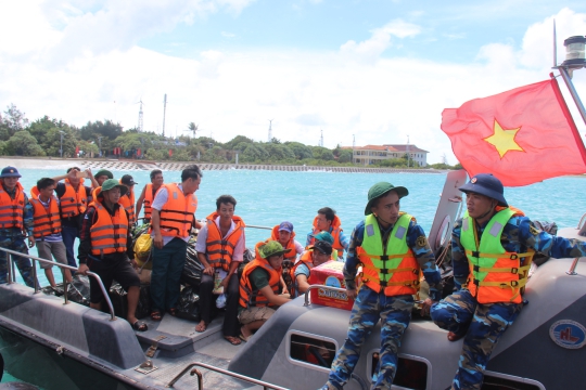 Xuồng CV chuẩn bị đưa đoàn rời đảo Trường Sa