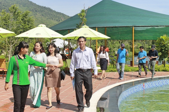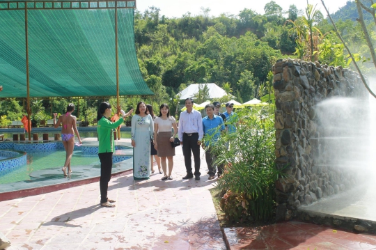 Hướng dẫn viên giới thiệu các dịch vụ của Khu tắm bùn khoáng Yang Bay