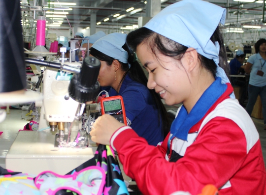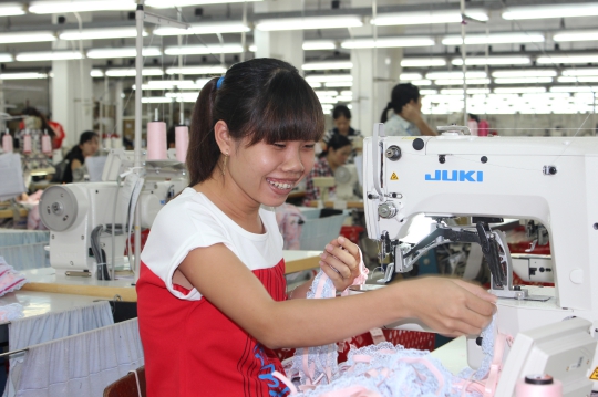 Nữ công nhân Công ty TNHH May mặc đồ bơi Thống Nhất cần mẫn với công việc