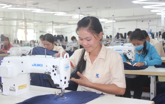 Nữ công nhân Xí nghiệp may Khatoco Ninh Ích chăm chỉ